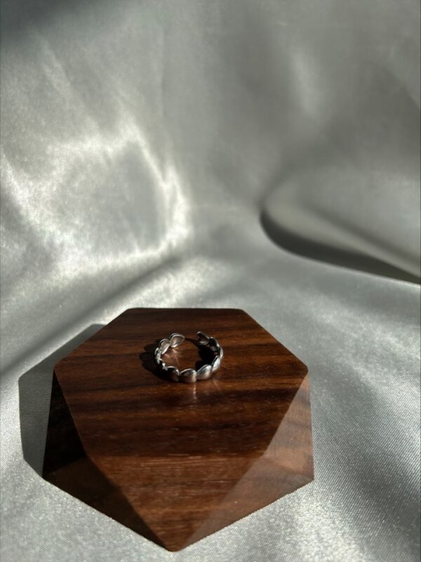 Une bague ajustable couleur argent, entièrement décorée de cœurs, pour un symbole d’amour délicat et intemporel