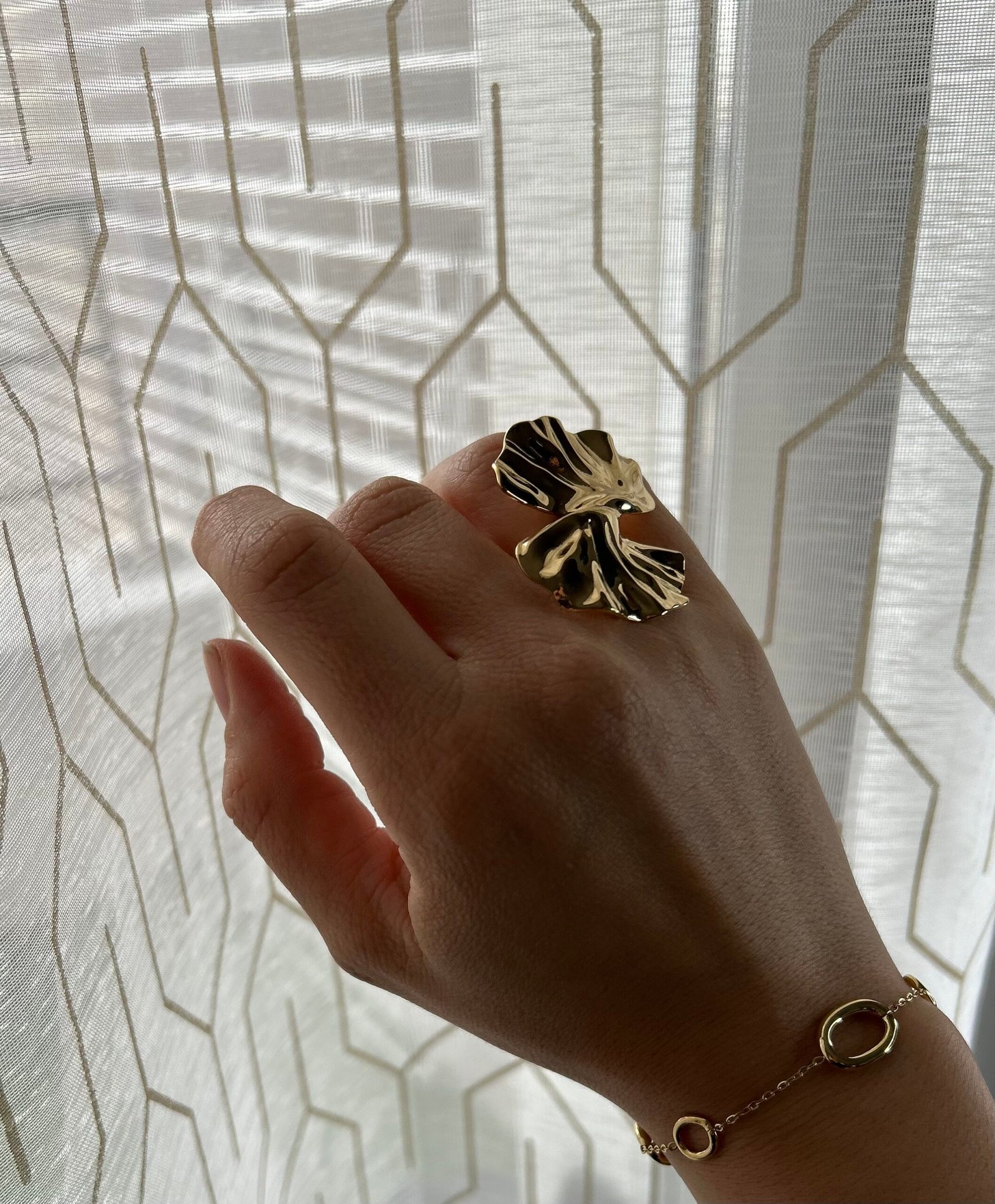 Bague Dorée Élégance Botanique Et Ondulations
